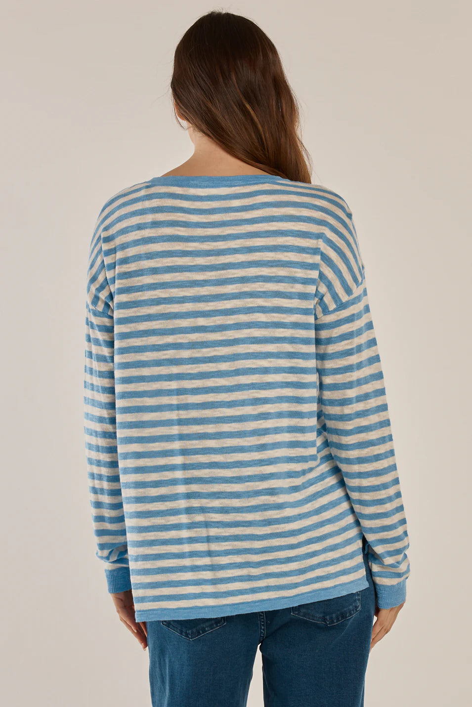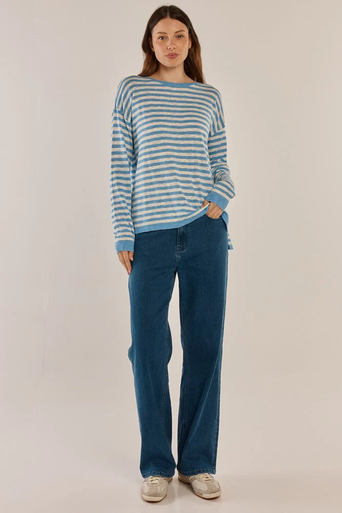 The Natasha Knit Top blends everyday comfort with an elevated striped finish. Made from soft knit fabrication, it features a classic crew neckline and ribbed trims. Easy to wear and style, it works perfectly across seasons. A relaxed transeasonal essential for effortless dressing.
