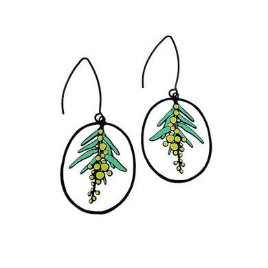 DENZ Midi Wattle Flower Earrings Black/Yellow/Green