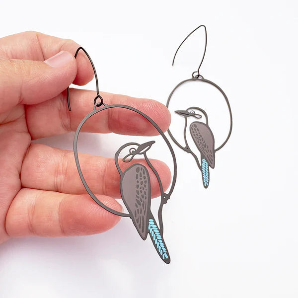 Midi Kookaburra earrings in Black/Brown/Blue. Super super lightweight.