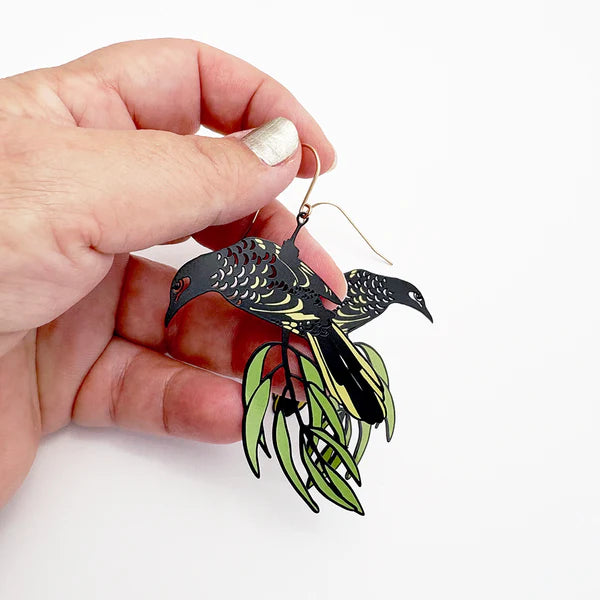 Regent Honeyeater earrings in Black/Yellow/Green. Super lightweight.