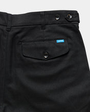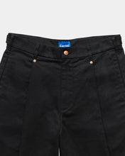 The Lyu Short is crafted from 100% cotton twill, offering a long and wide leg cut with deep pleats for a fuller fit. It features practical side seam pockets and back flap pockets secured with button closures. The adjustable waistband tabs ensure a perfect fit. The design includes star rivets, tortoise shell buttons, and a Larriet woven label. Male model is 6'2" tall with a 32" waist and wears a size 32.