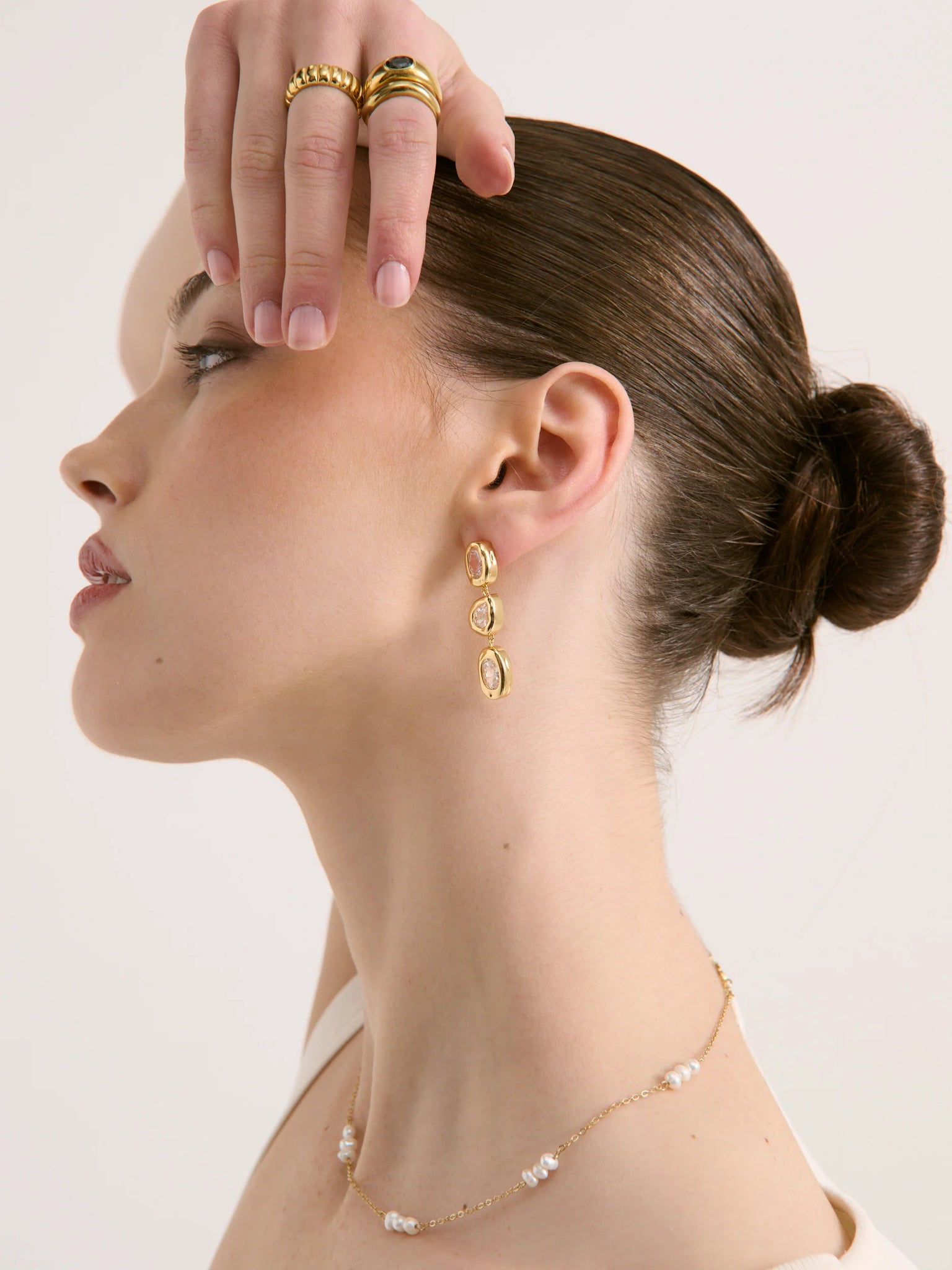 Meet Cascade Crystal, our new Drop earrings. Part of our Lustre & Sage collection, featuring dainty & timeless 18K gold & silver plated pieces.