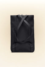Backpack is cut in Rains’ signature waterproof PU fabric, engineered for carrying strength, durability, and a smooth feel.