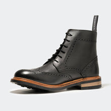 Crafted with beautiful glossy aniline cow leather, this handsome brogue boot will become your all-event favourite. Premium Goodyear welted construction, stacked leather heel, spongy EVA footbed, rubber outersole with rubber heel and forepart grips; this boot is a comfortable piece of everyday luxury.