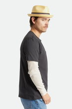 The Castor is a traditional menswear fedora with a strong pinch and bold crease. It’s made with medium-stiff paper straw embellished with a grosgrain outside band and metal crest pin. It has 50+ UPF and an adjustable interior sweatband making it a flawless companion for sunny days.