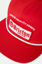 Bring some serious retro vibes to your fit with the Tradesman Snapback. This cap is a bold mix of style and function, standing out with its bright cherry red cotton twill and crisp white accents. We designed it as a medium-profile, unstructured 5-panel with a flat bill, blending classic design with modern flair, and adding a merrowed-edge Brixton patch and distinctive brim rope for a look that's both rugged and refined. Built for comfort, it features a built-in sweatband with moisture-wicking properties to keep you cool and fresh through any adventure, making it a must-have for anyone looking to upgrade their hat game with a mix of edge and practicality.