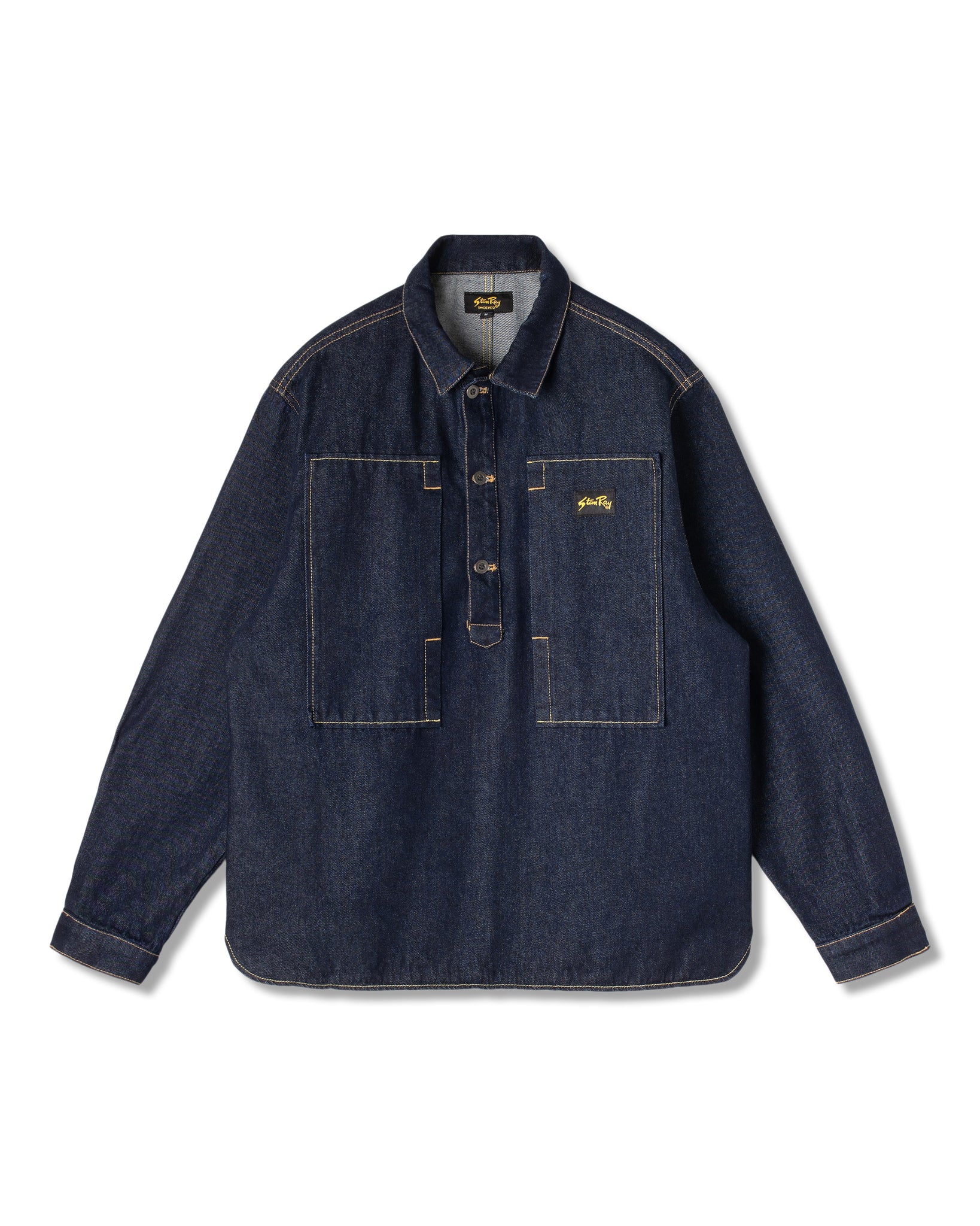 The Painters Pop Over Shirt is a modern take on classic workwear. It features a boxy, relaxed fit and a versatile pop-over design that’s easy to wear and layer. Large side-entry patch pockets on the front are accessed across the chest and the scalloped side seams cut a clean silhouette over pants.
