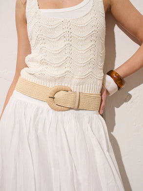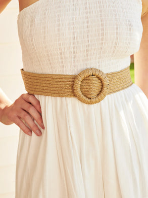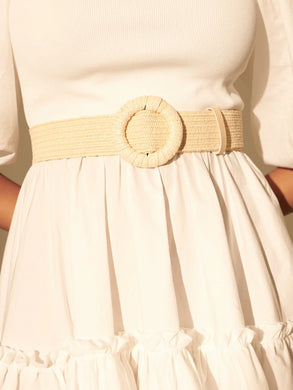 • Angels Whisper Carmine Circle Buckle Straw Belt Beige