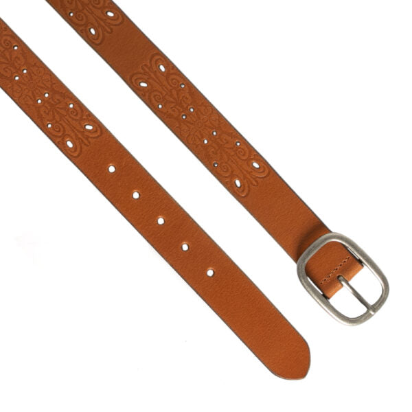 Introducing the ideal companion for your denim this summer – the Alexis leather belt. Her bohemian-inspired embossed design will look great teamed with jeans, shorts, and skirts. You will be ready for the relaxed summer days, while knowing that this versatile belt will seamlessly transition your wardrobe into the cooler months. With her durable construction and trendy design, the Alexis leather belt is a must-have addition to your accessory collection