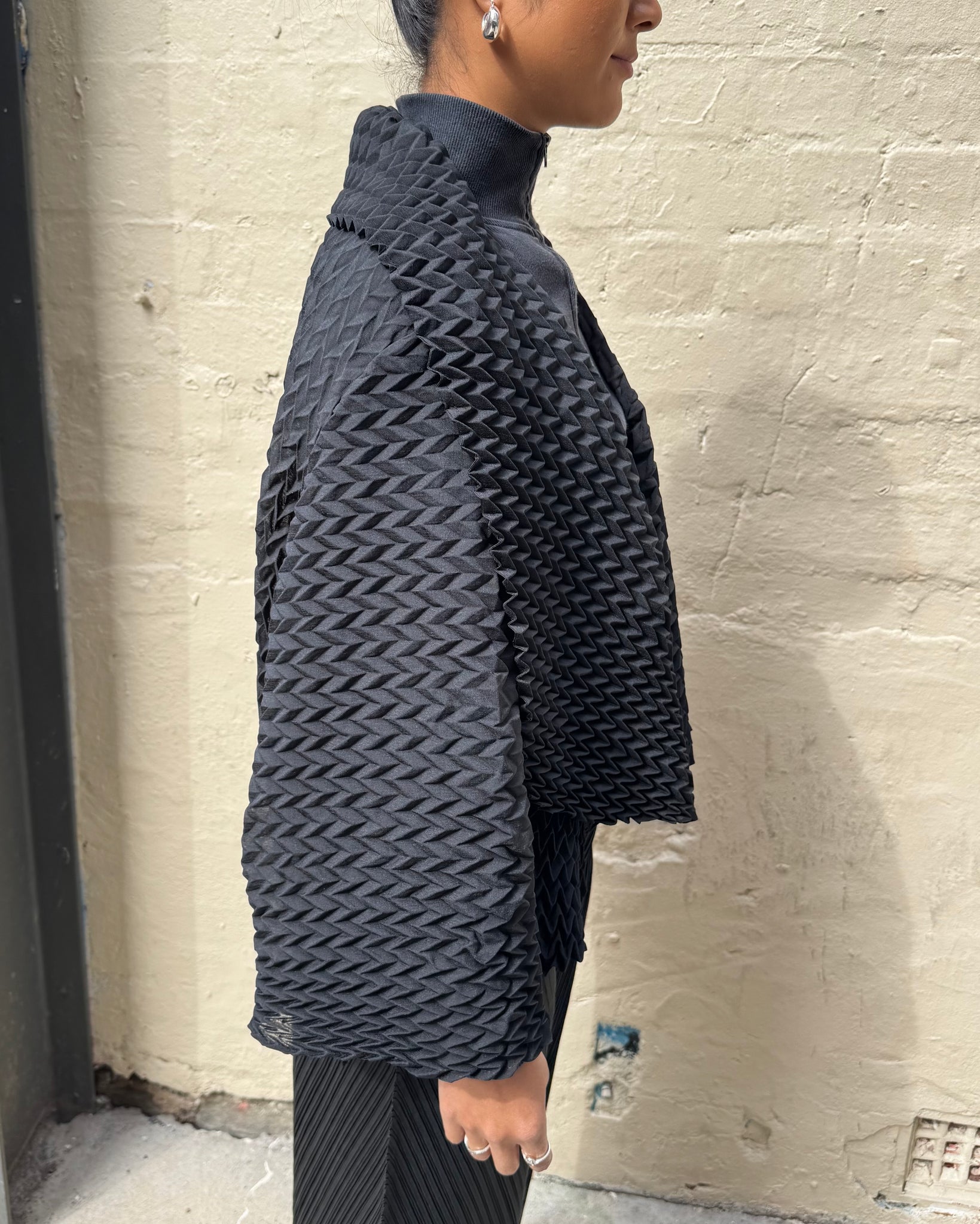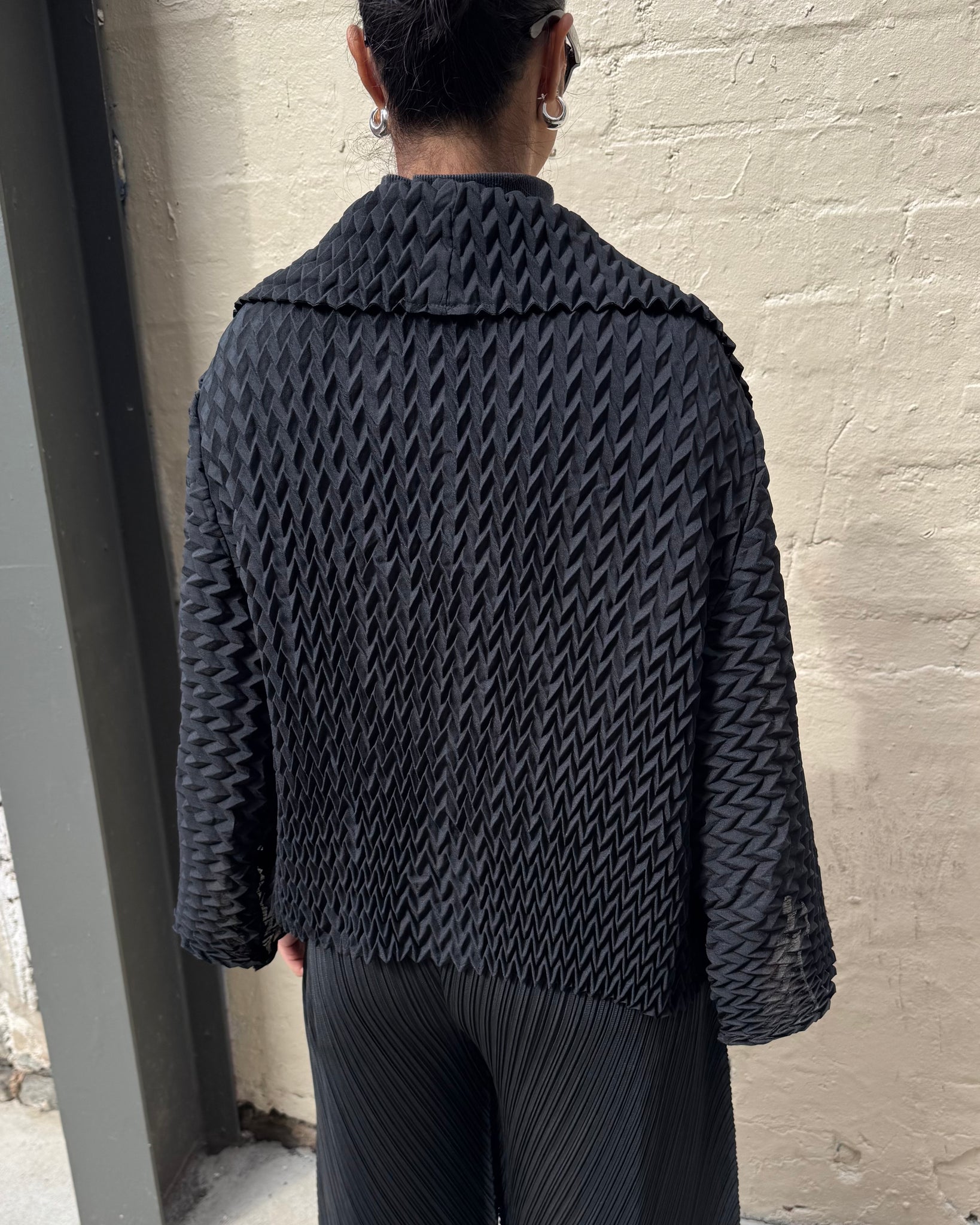 Indulge Me CLO101 Zig Zag Pleated Jacket Black