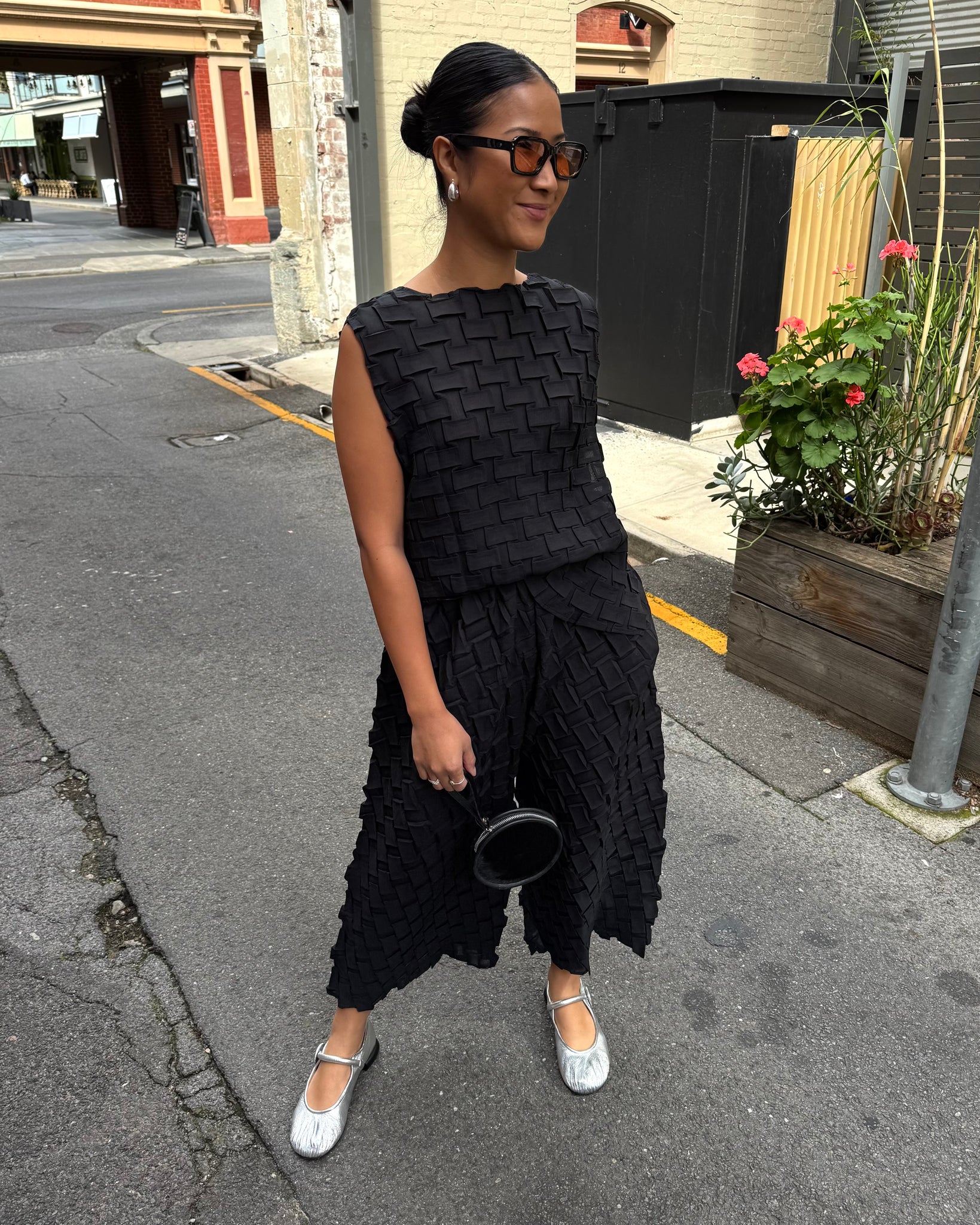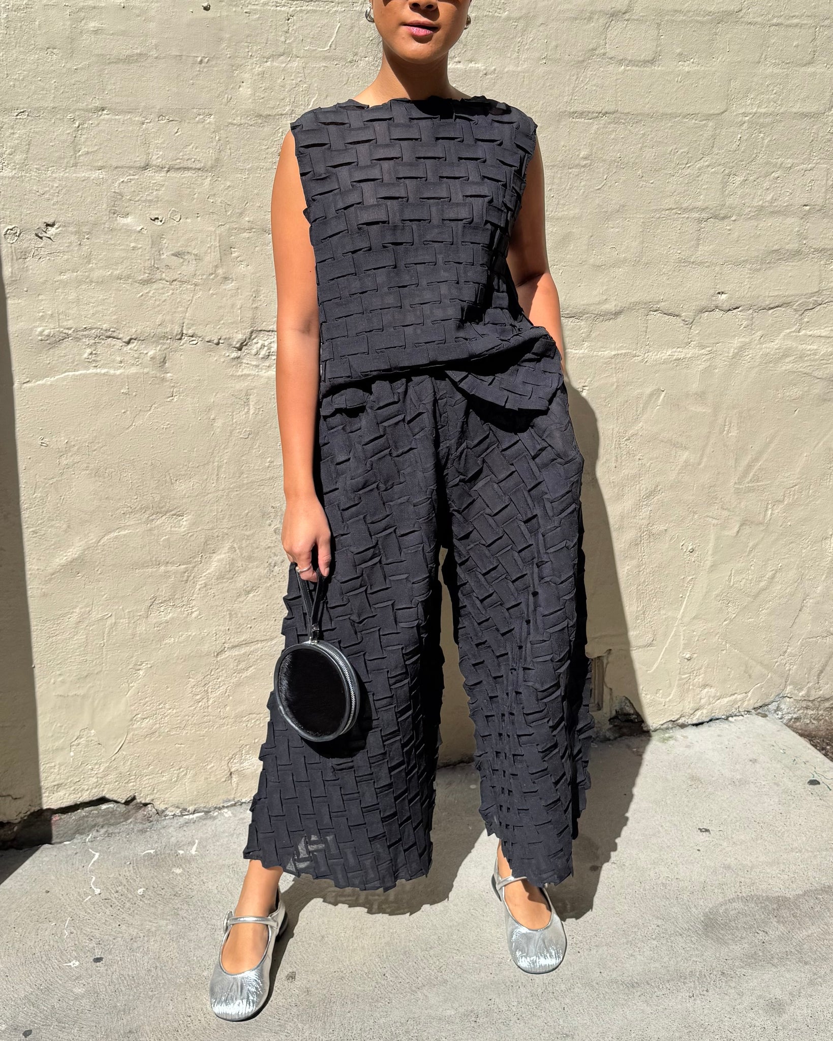 Indulge Me CLO105 Basket Weave Pleat Top & Pants Set Black
