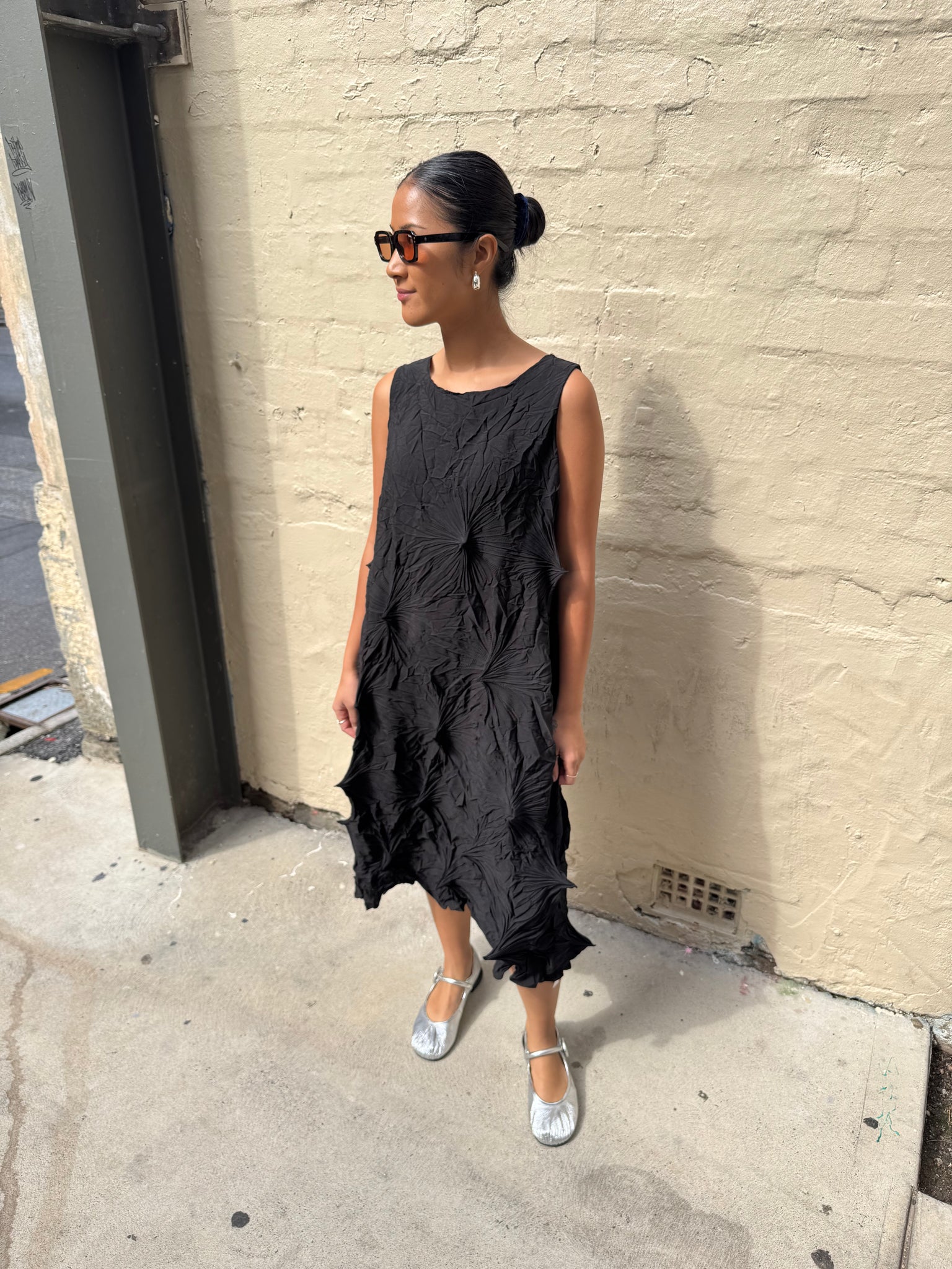 Indulge Me CLO113 Sleeveless Twist Pleat Dress Black