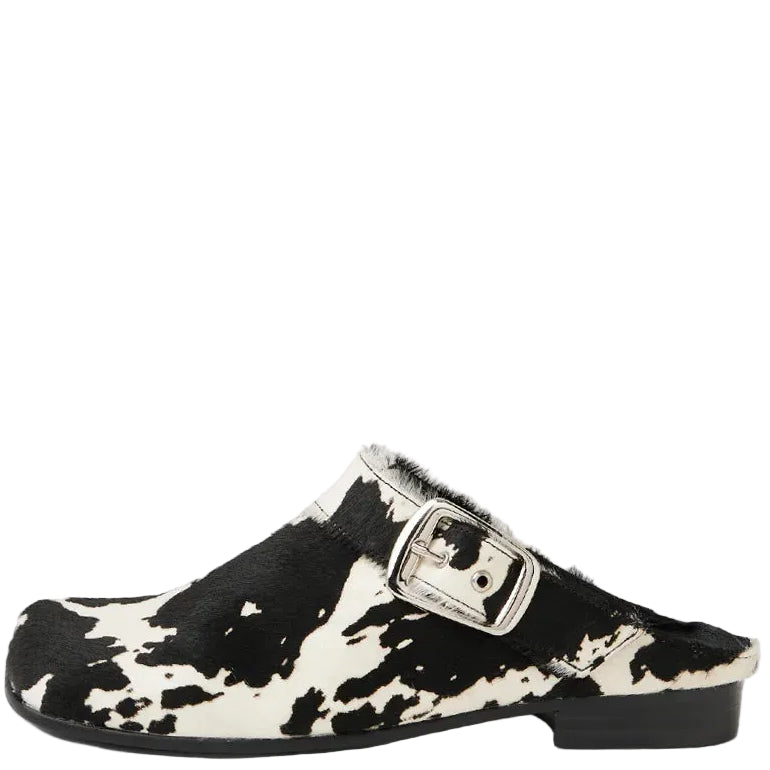 Django & Juliette Grippo Black White Pony Leather Mules