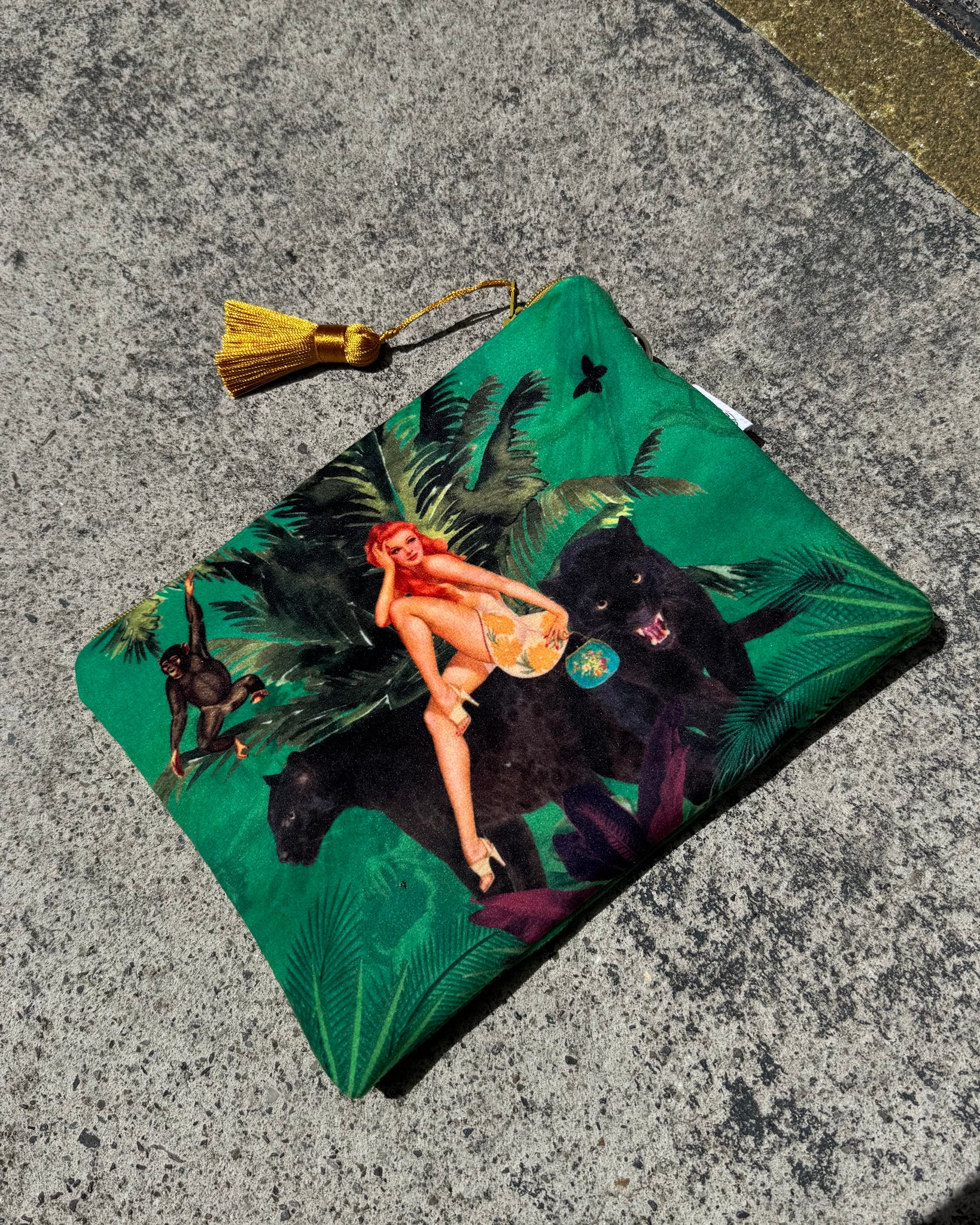 Queen K Jungle Green Velvet Cosmetics Purse