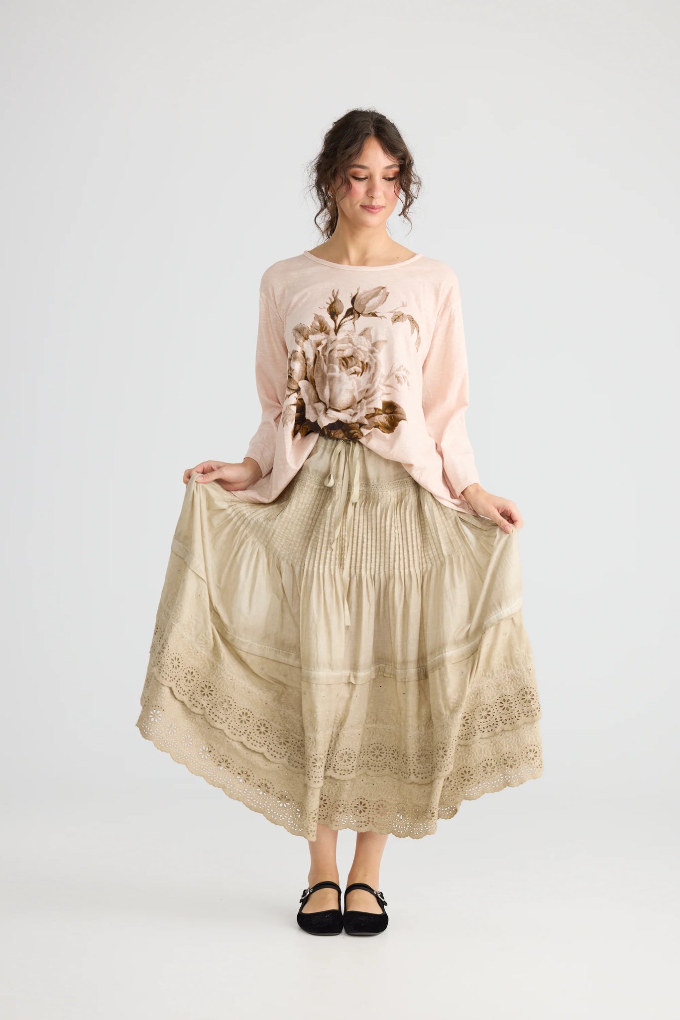A Date with Mabel is the perfect high tea skirt!! Full and flirty and absolutely enchanting, Mabel is made from Broderie Anglaise - cotton lace ! Very full with a drawstring waist it will fit everyone very comfortably.