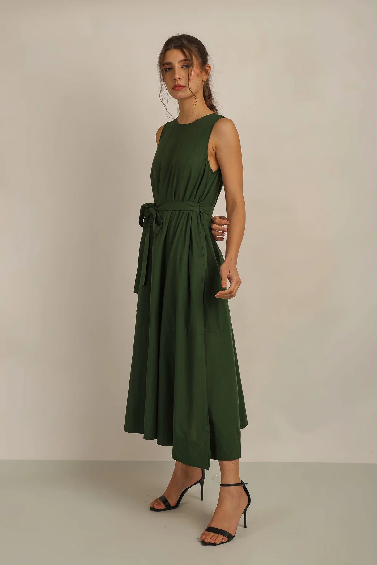 Expertly crafted with a flattering flare silhouette, the SAMMY FLARE DRESS is a versatile addition to your wardrobe. Featuring a sophisticated sage green colour and a generous sweep, this dress can be worn with or without the included sash belt. Elevate your style with this beautiful, fully lined dress.