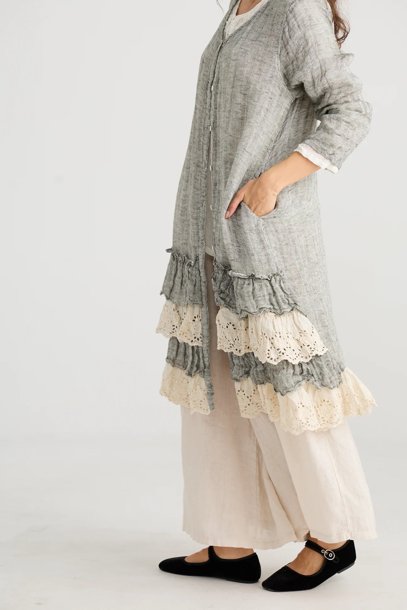 Life is like a poem - verses and layers - this coat dress made from textured linen and beautiful cotton lace has a poetry all it`s own.