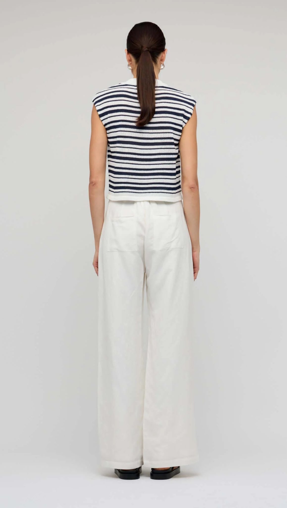 The Palmer Navy & White Stripe Knit Tank Top by Staple the Label brings a fresh coastal feel to your everyday wardrobe. Crafted from 100% acrylic, this lightweight knit tank features classic navy and white stripes with a crew neckline and relaxed fit. Perfect for layering or wearing on its own, it’s a versatile piece that pairs effortlessly with denim, linen shorts, or wide-leg pants.