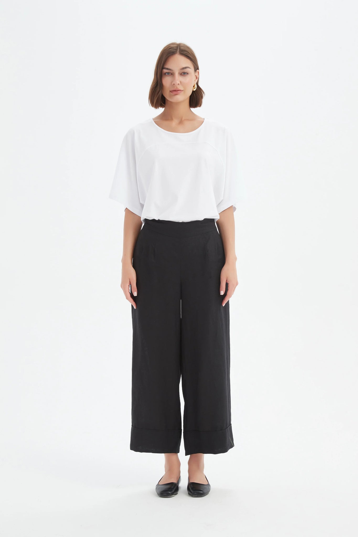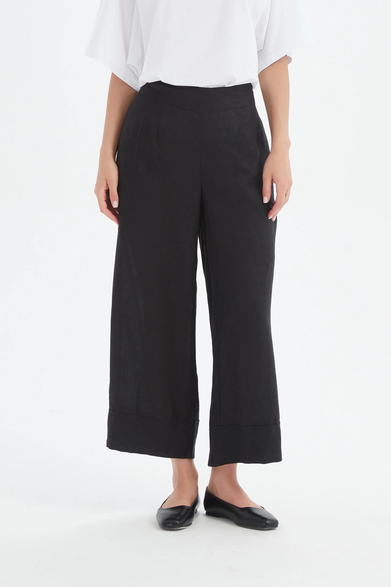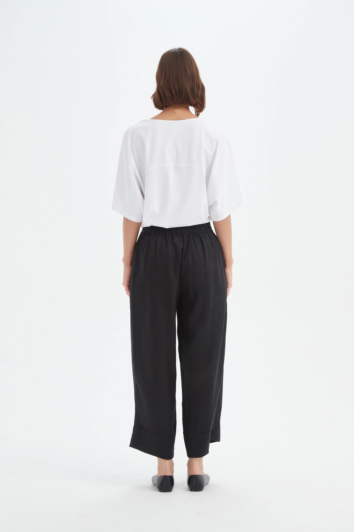 Effortless comfort meets modern tailoring in the Wide Leg Linen Pant. Crafted from 100% French linen, these cropped pants feature a relaxed wide-leg silhouette, an elasticated back waistband for ease, and convenient side pockets. Perfect for styling with tees, blouses, or layering with lightweight tops. Offering versatile, refined elegance for sunlit days and relaxed summer dressing.