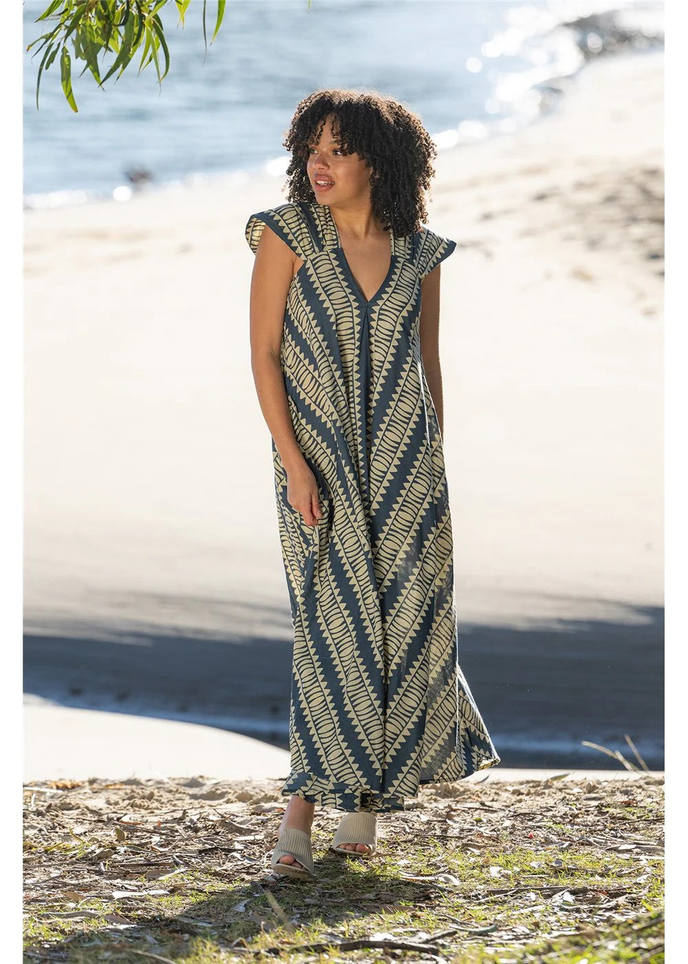 • Load image into Gallery viewer, Cienna Hemi Cotton Dress Blue